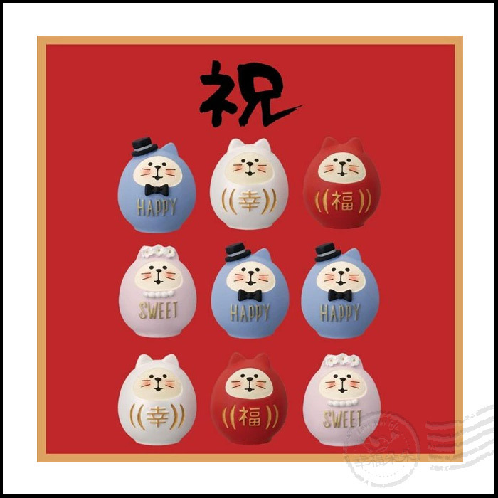 【日本 Decole|不倒翁貓咪 幸福 結婚公仔】 可愛的不倒翁貓咪公仔,有HAPPY SWEET、幸福 共2款可選 兩款的配色都好可愛呀~帶著滿滿祝福的公仔~ 收到的人都一定會很開心! 把它展示在你的商店或房間裡,帶來滿滿的好心情。 非常適合當生日禮物、情人節禮物、畢業禮物、交換禮物、聖誕禮物,可放置桌面當療癒小物喔🎁