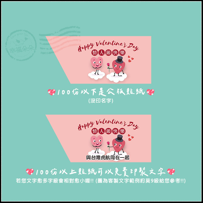 每個包裝盒內均有 金莎巧克力3顆入 ,外盒並貼有幸福朵朵獨家設計貼紙,非常典雅活潑!作為感謝送禮或拜訪客戶都絕對是超棒的小禮物喔🧡 🧡100份以下是公版貼紙(沒印名字) 🧡100份以上貼紙可以免費印製文字 ※訂購滿百份者若欲客製加印文字請詳閱以下注意事項↓↓↓ 1. 請務必記得要留言備註您的文字內容喔! 未備註者將以「公版」出貨 !!! 2. 若您文字愈多字級會相對愈小喔!! (圖7客製文字約莫9級給您參考!!)