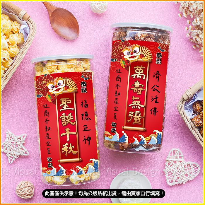 神明祝壽供品 恭祝土地公 聖誕千秋 濟公 萬壽無疆 大罐爆米花罐 (口味可選,已貼空白涼水貼紙) (新品上市特價中)
