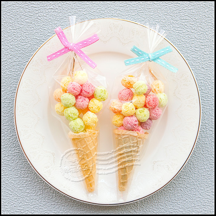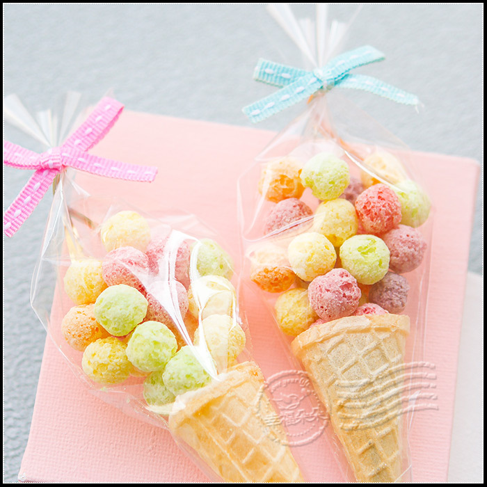 可迷你可愛的水果風味甜筒軟糖搭配上好吃的五彩球餅乾 純手工精製,視覺不但可愛加分~口感更加倍😝 是非常受歡迎的糖果喔~😋 拿來供奉神明ㄏㄡ神明呷滴滴馬美賣唷🤟 或當生日、婚禮分享都超特別💓 (軟糖口味及蝴蝶結顏色皆是隨機出貨)