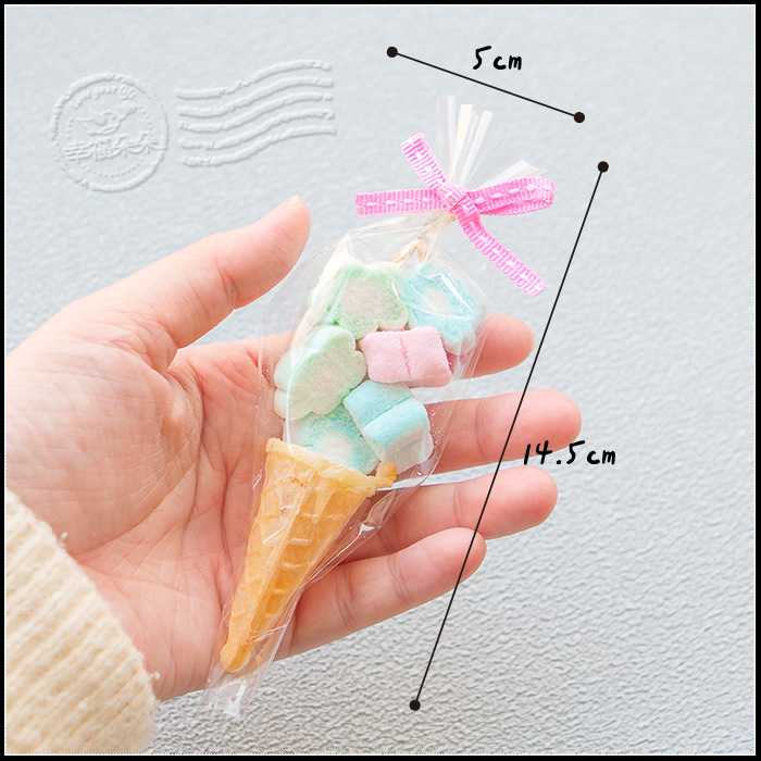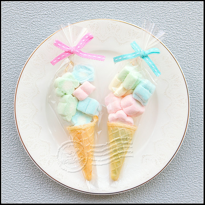 可迷你可愛的水果風味甜筒軟糖搭配上好吃的小花棉花糖 純手工精製,視覺不但可愛加分~口感更加倍😝 是非常受歡迎的糖果喔~😋 拿來供奉神明ㄏㄡ神明呷滴滴馬美賣唷🤟 或當生日、婚禮分享都超特別💓 (軟糖口味及蝴蝶結顏色皆是隨機出貨)