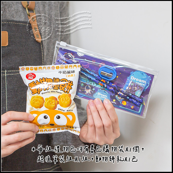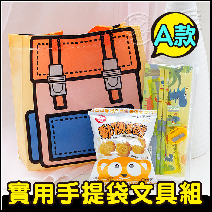 開學禮物 A款 實用手提袋文具組 (內含超值筆袋組X1組+動物餅乾X1包 需自行放入) (新品上市特價中)