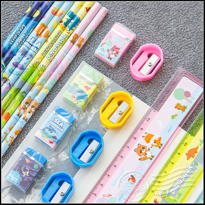 🧡🧡🧡 每組筆袋均有:鉛筆*2支 + 15cm短尺*1支 + 削筆器*1個 + 橡皮擦1個