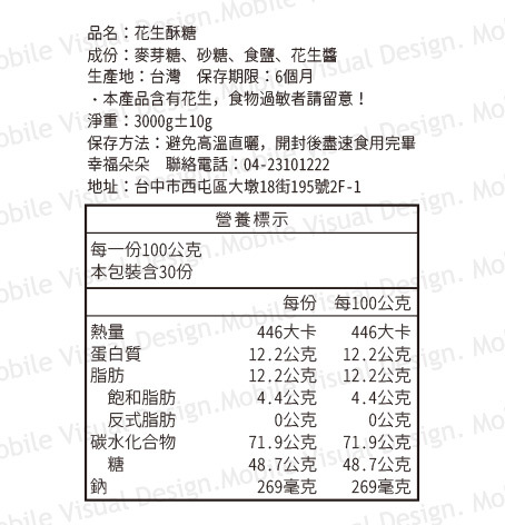 麥芽糖、砂糖、食鹽、花生醬 .本產品含有花生,食物過敏者請留意!