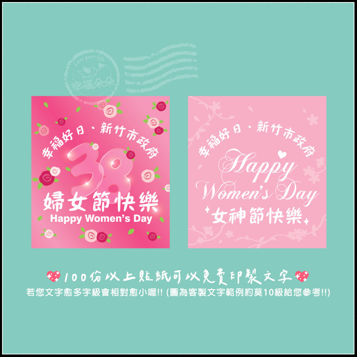 🧡最新推出~ 婦女節快樂招財福米,讓您事業財源廣進,感情處處逢緣🙌 您可以這樣做 👉 將招財米拿去廟裡神明拜拜祈願、加持!經過✨神明加持✨後,放在家中財位、辦公桌,或摻在米缸裡和其他米飯一起烹煮食用,就可以招來一整年的好福氣,讓您財旺人旺凡事旺、天泰地泰三陽泰、人和事和萬事和。 「用歹丸最好的米,讓你滿滿好運發大財!」 🧡嚴選正港MIT在地歹丸郎用感情種的好米,與我們共同為這片土地耕耘。一波波金黃稻浪,豐收,感謝老天的厚愛,沙沙豐滿的稻榖聲,滿足,每粒粒白米都像似精彩的人生。歹丸優質的良米,讓更多親友吃到歹丸真正的好米,把最用心的情感傳達下去.... 🧡此款為金磚外盒的設計,每一份都是代表著祝福親友大富大貴的吉祥意義!打開內裝300g 的在地蓬萊米,最佳賞味期約半年 共有2款可挑:婦女節快樂貼紙、女神節快樂貼紙🧡 🧡100份以下是公版腰封(無客製文字) 🧡100份以上可挑選①款腰封免費印製文字 🧡200份以上可挑選②款腰封免費印製文字 *接單後,公版現貨約3天內交件,若是客製外標腰封則約7-10天內交貨! ※訂購滿百份者若欲客製加印文字請詳閱以下注意事項↓↓↓ 1. 請務必記得要留言備註您的文字內容喔! 未備註者將以混2款「公版」出貨 !!! 2. 若您文字愈多字級會相對愈小喔!! (圖6客製文字約莫10級給您參考!!)