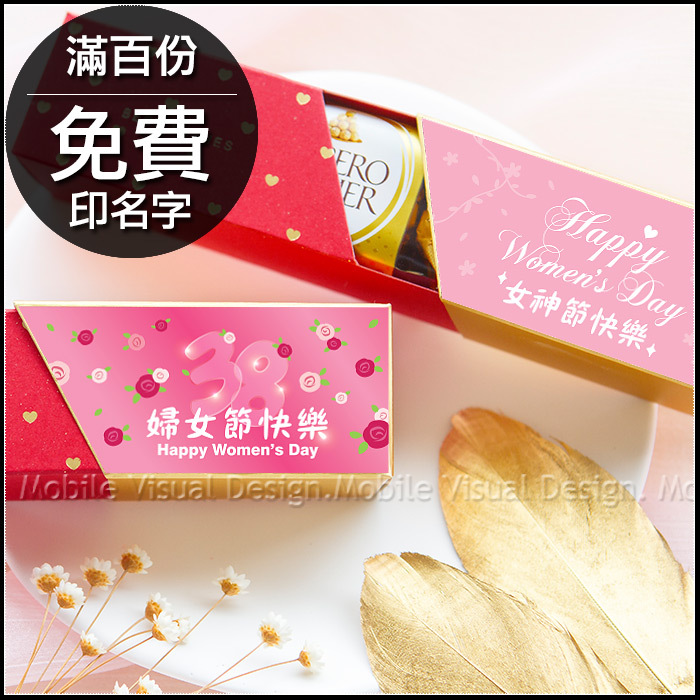 每個包裝盒內均有 金莎巧克力3顆入 ,外盒並貼有幸福朵朵獨家設計貼紙,非常典雅活潑!作為婦女節送禮或拜訪客戶都絕對是超棒的小禮物喔🧡 共有2款可挑:婦女節快樂貼紙、女神節快樂貼紙🧡