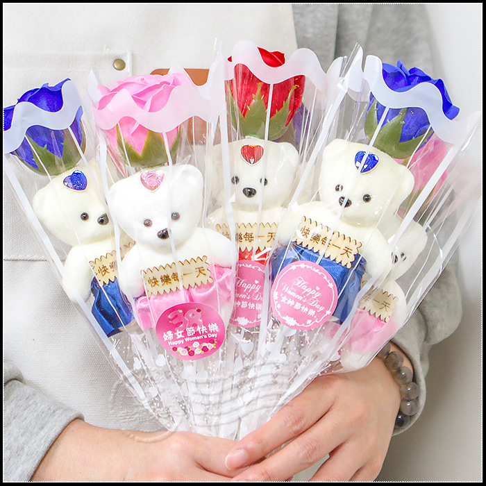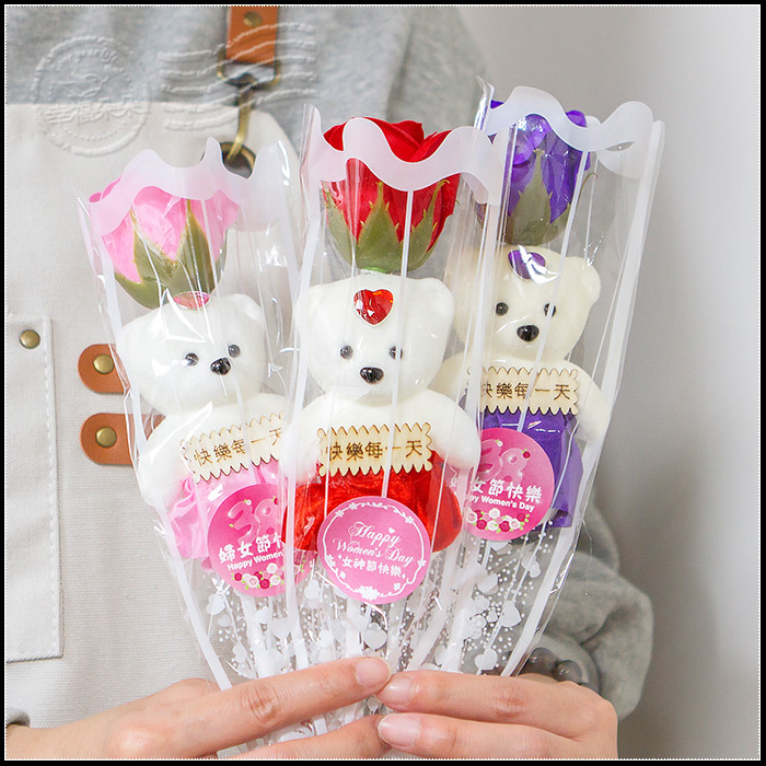 三八婦女節禮物 活動贈品 單支小熊款香皂玫瑰花 (4色可挑) (新品上市特價中)