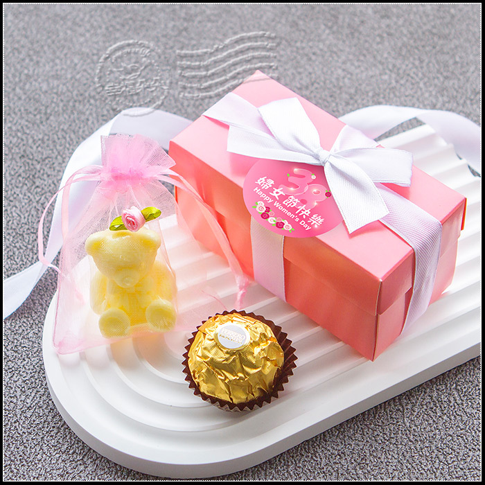 三八婦女節禮物 活動贈品 Pink盒「泰迪熊香皂+金莎」二入禮盒 (新品上市特價中)