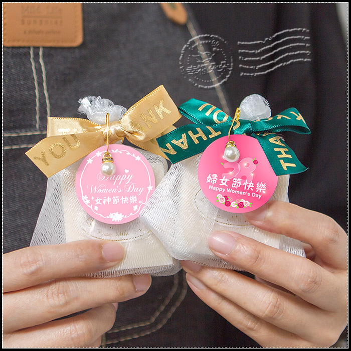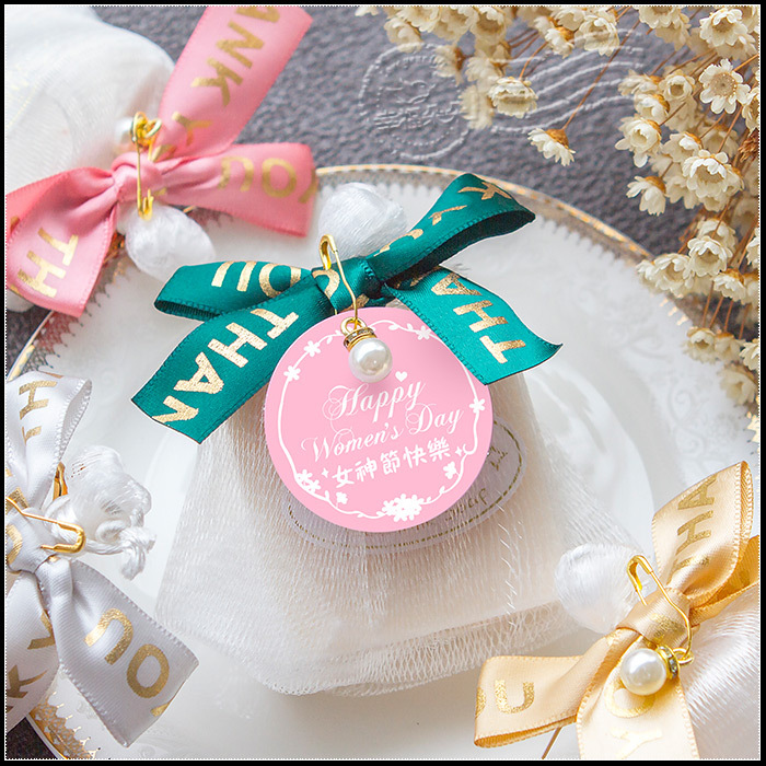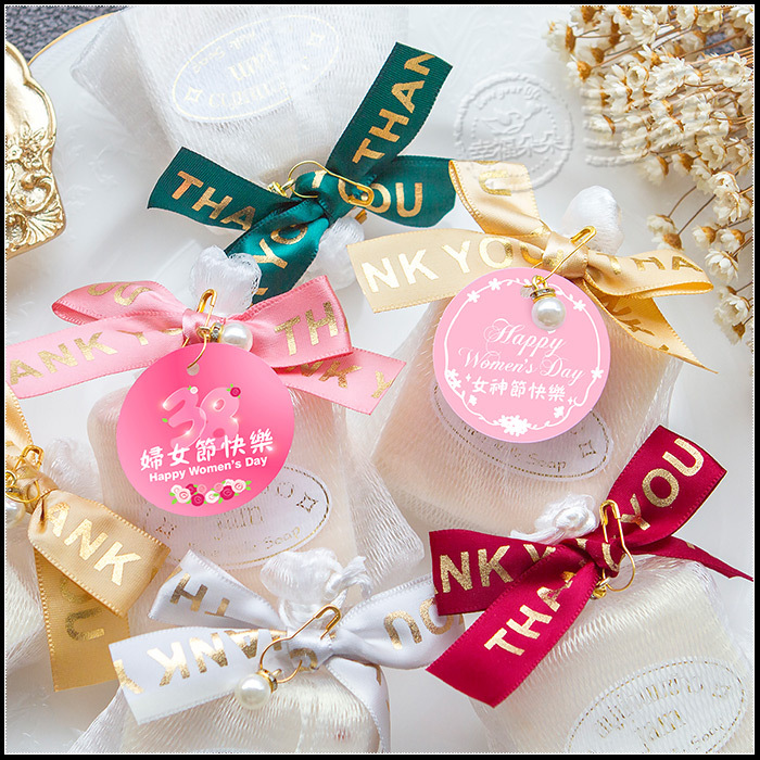 三八婦女節禮物 活動贈品 精緻珍珠紗網包裝 泰國冷製皂(5色燙金蝴蝶結均出) (新品上市特價中)