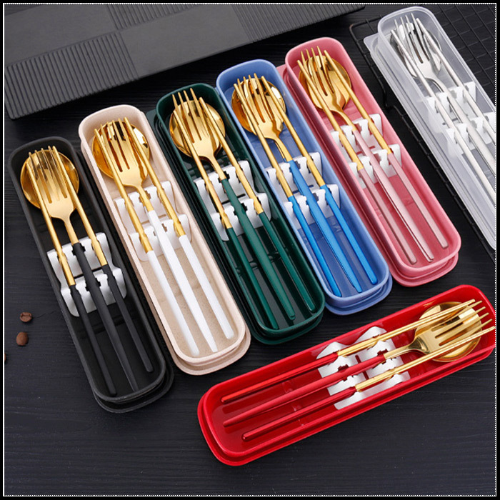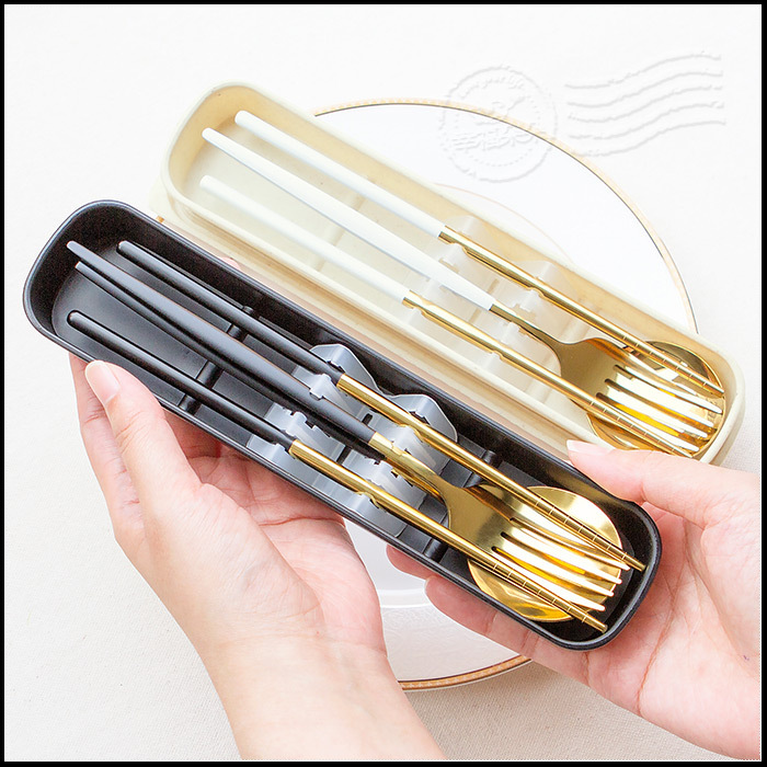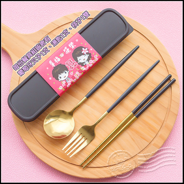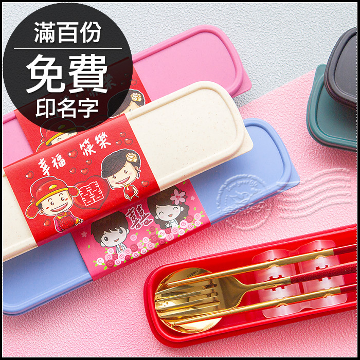 婚禮小物 歡囍幸福筷樂 精緻不鏽鋼環保餐具3件組 - 葡萄牙筷子+湯匙+叉子組 (6色可挑) (滿百份免費印名字)(新品上市特價中)
