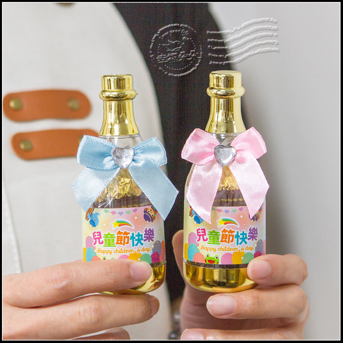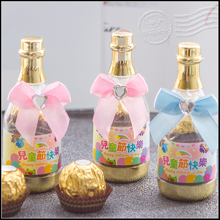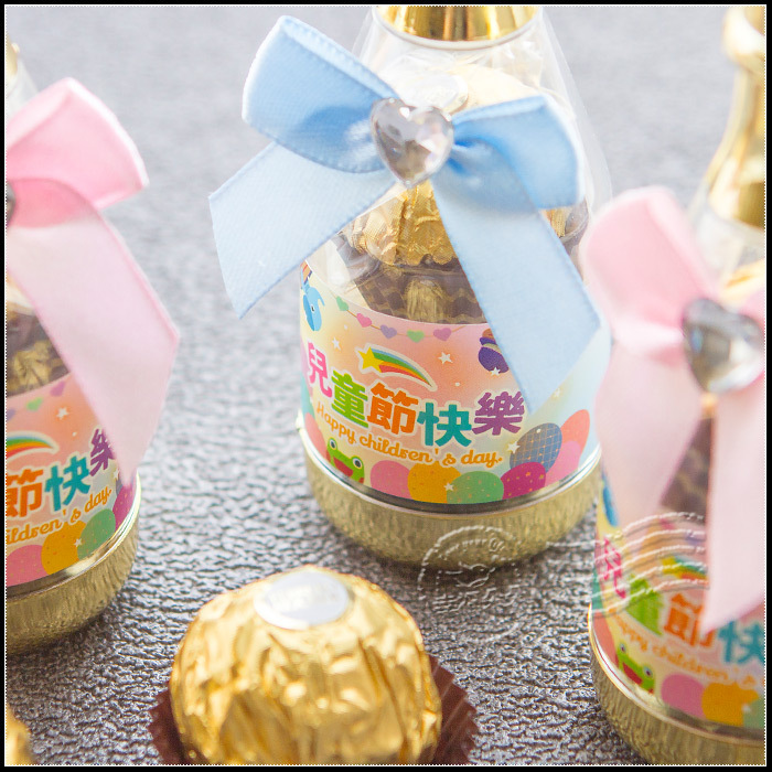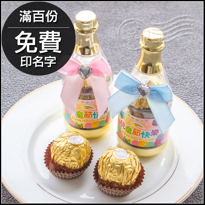 兒童節禮物贈品 兒童節快樂 香檳糖果瓶(金莎2顆入) -滿百份免費印名字 (新品上市特價中)
