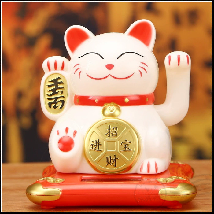 櫃台招財小物 招財進寶招財貓 太陽能 會擺手 高10cm (新品上市特價中) |