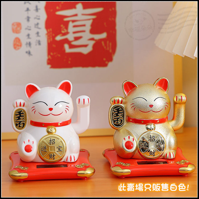 招財進寶 招財貓笑容滿面、幸福滿溢,寓意幸福美滿😺 手上帶有千萬兩,黃金滾滾來! 胸前也帶著招財進寶,真的是太可愛啦~ 只需簡單裝上電池,或是使用太陽能 就能無時無刻為你帶來好運喔~ 不管是開業大吉,還是替家中增添一點幸運 這隻招財進寶招財貓都是你最好的選擇~ ♥︎若大量訂購下訂前務必先詢問庫存數是否足夠喔!