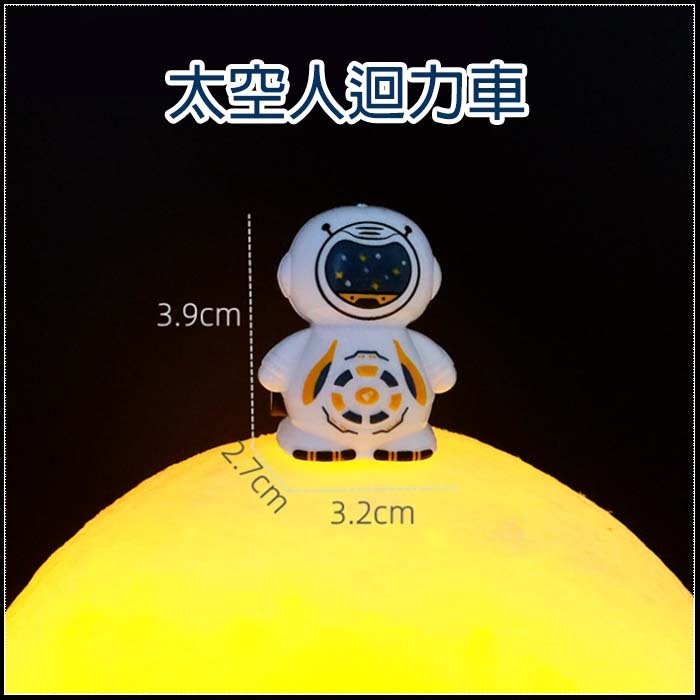 太空人迴力車(材質:塑膠)尺寸:3.2*2.7*3.9cm (內容物手工測量,多少會有些微誤差喔! 不介意才下訂)