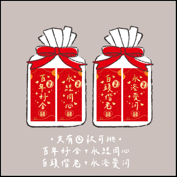 共有②款可挑: 1.百年好合+永結同心組 2.白頭偕老+永浴愛河組