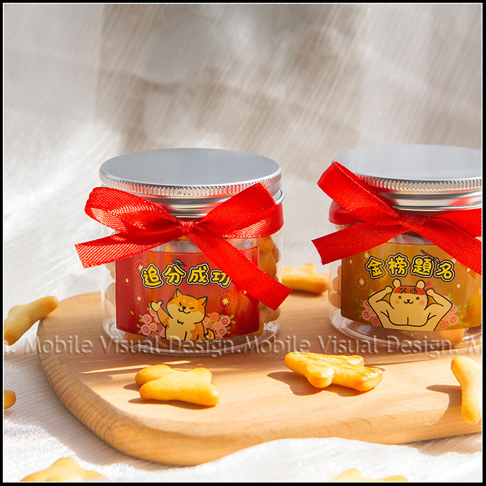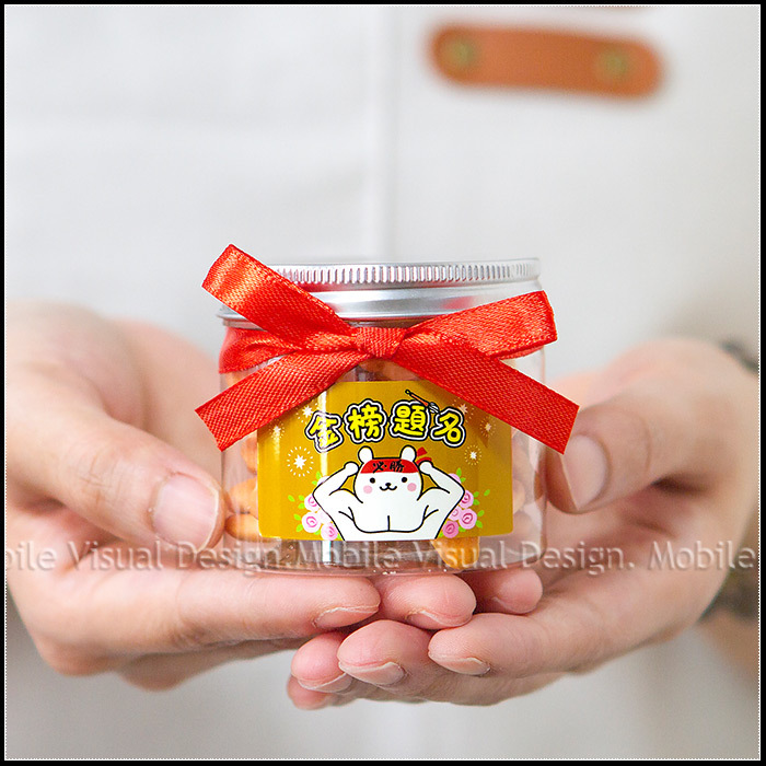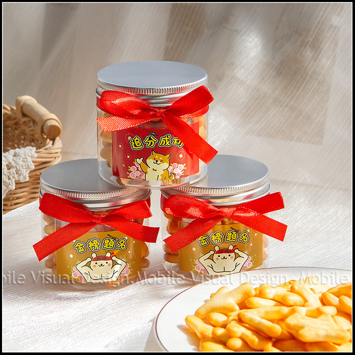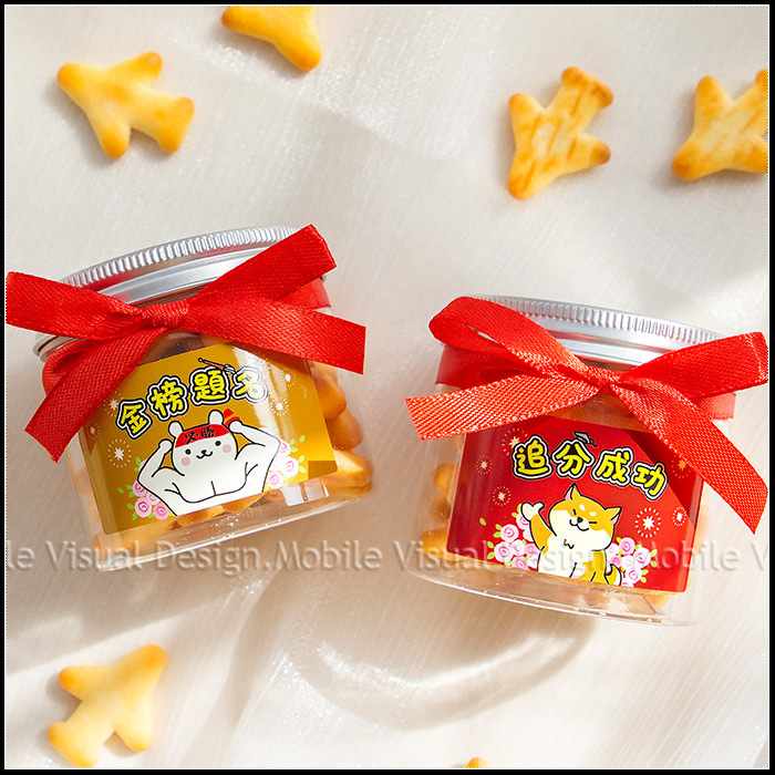 古早味的飛機餅乾,薄鹽加上奶香味十足且造型可愛,是小朋友的最愛! 每罐都貼有幸福朵朵獨家電繪插圖貼紙,有柴柴加持、有大肌肌熊熊助力!並繫上亮紅色緞帶,活潑又可愛唷✨拿來跟小朋友們分享超讚唷! 共有②款可挑:追分成功(柴柴款)、金榜題名(大肌肌熊熊款)