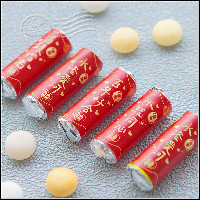 迷你曼陀珠,隨時隨地給您好心情! 每條均貼有幸福朵朵獨家設計貼紙~ 讓糖果們增加有趣的風格吧~ 拿來當作迎賓送客喜糖讚讚der唷!
