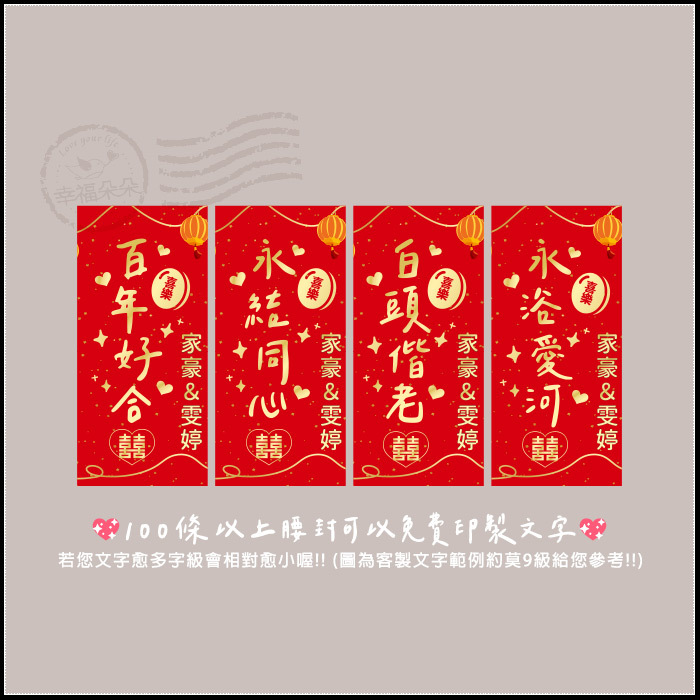 共有④款可挑:百年好合、永結同心、白頭偕老、永浴愛河🧡