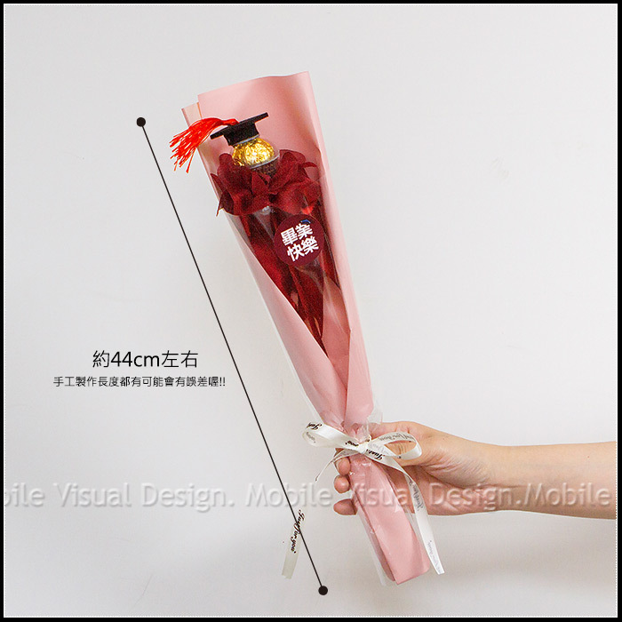 約4cm圓 x 高42-43cm左右 整束花束約寬11 x 44cm (因該花束為手工製作,每束花束體積大小難免會有誤差喔!)