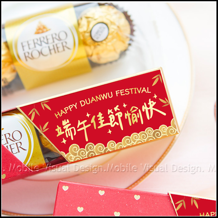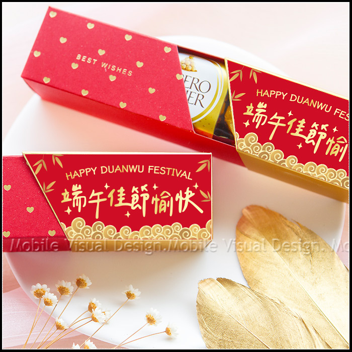 端午節禮物 業務贈品小禮物 時尚閃金包裝 金莎3顆入 端午佳節愉快 滿百份免費印名字 (新品上市特價中)