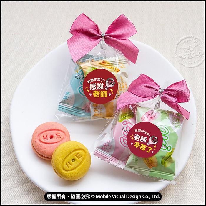 獨立包裝的迷你馬卡龍,新人氣療癒系甜點🏆 繽紛造型,小小一塊,口感酥脆超好吃😋 再搭配一杯熱呼呼的茶飲🍵 與幸福下午茶一起度過甜甜時光~ 每份小禮物皆有2小包馬卡龍夾心餅 餅乾共4種口味:檸檬、草莓、抹茶冰淇淋、香草 (均為隨機出貨) 貼紙共2種款式:老師辛苦了、感謝老師 原產地-馬來西亞 餅乾容易受潮,開封後就儘早食用完畢 保存方式:存放於乾燥陰涼處即可 保存期限:至少半年以上 接單後排單交貨(趕件者請先詢問時間) 產地:台灣