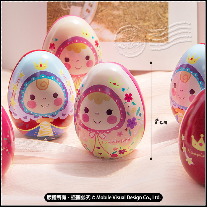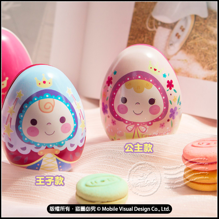 可愛的王子與公主圖案彩蛋馬口鐵盒, 甜甜的笑容讓人會心一笑, 好比王子與公主過著幸福快樂的日子, 也寓意著小王子與小公子是父母的掌心寶貝喔! 大小比健達出奇蛋還大一些! 而且這款是可以「站立」的,擺在桌上超療癒♪♪ 裡面裝有2顆馬卡龍夾心餅~真是太可愛啦🤭 獨立包裝的迷你馬卡龍,新人氣療癒系甜點🏆 繽紛造型,小小一塊,口感酥脆超好吃😋 皆為混合口味出貨,恕不挑口味唷~ 共有2款彩蛋外殼可挑:王子款、公主款 作為節日送禮都絕對是超棒的禮物! 都會是一個非常受歡迎的小禮物喔🧡 收到的人們都會很開心~