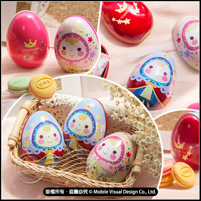 每單顆夾心餅實體約3 x 3cm 彩蛋約 寬6 x 側寬6 x 高8 cm (重約37g) 內容物手工測量,多少會有些微誤差喔! 不介意才下訂