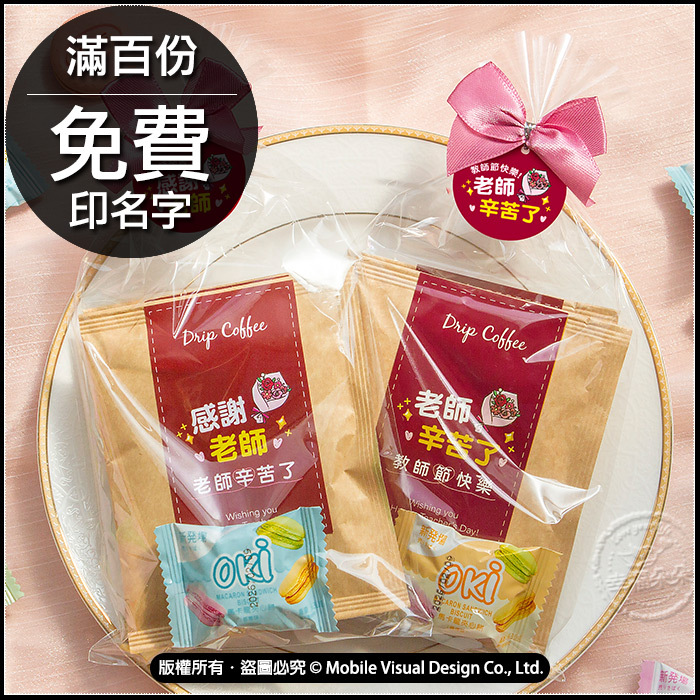 教師節快樂 感謝老師 禮物包 馬卡龍夾心餅1入+濾掛咖啡2包 -滿百份免費印名字 (客製限宅配) (新品上市特價中)