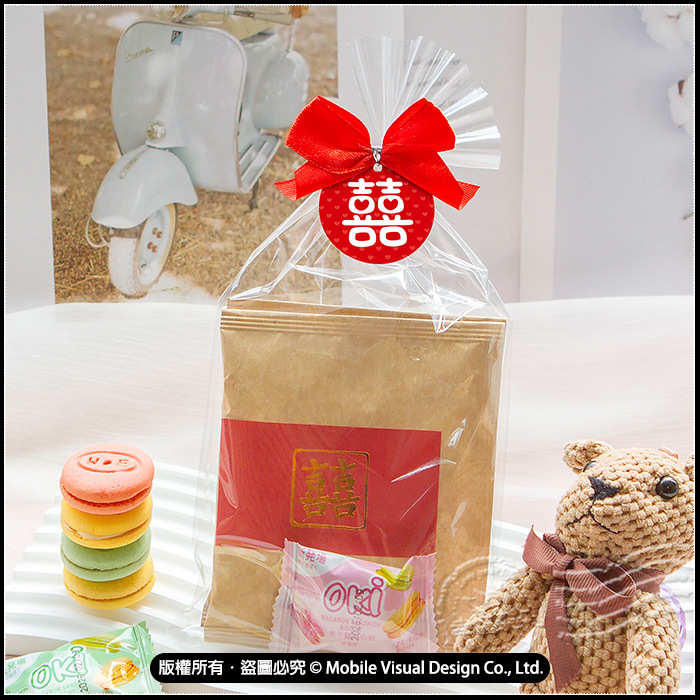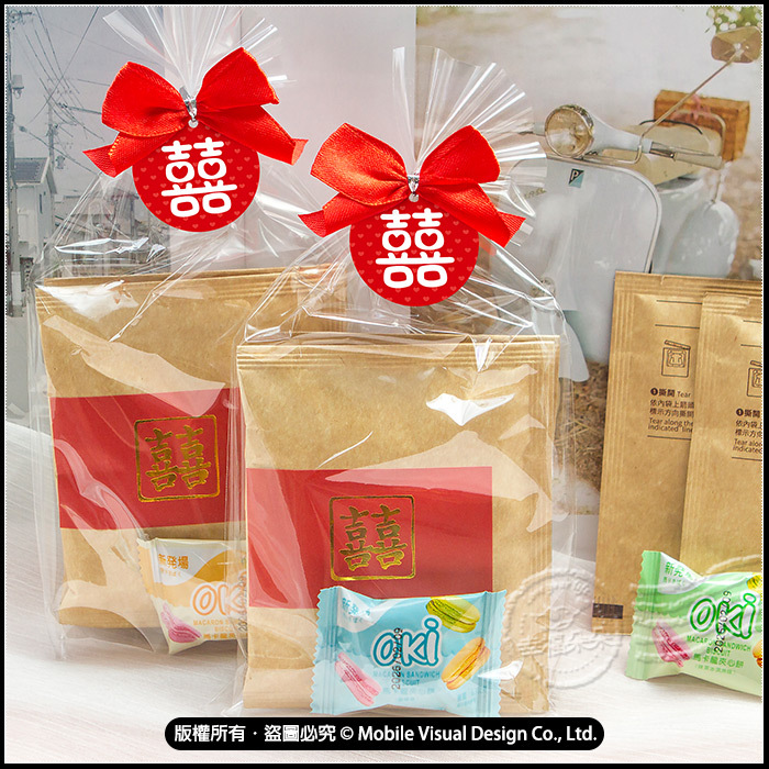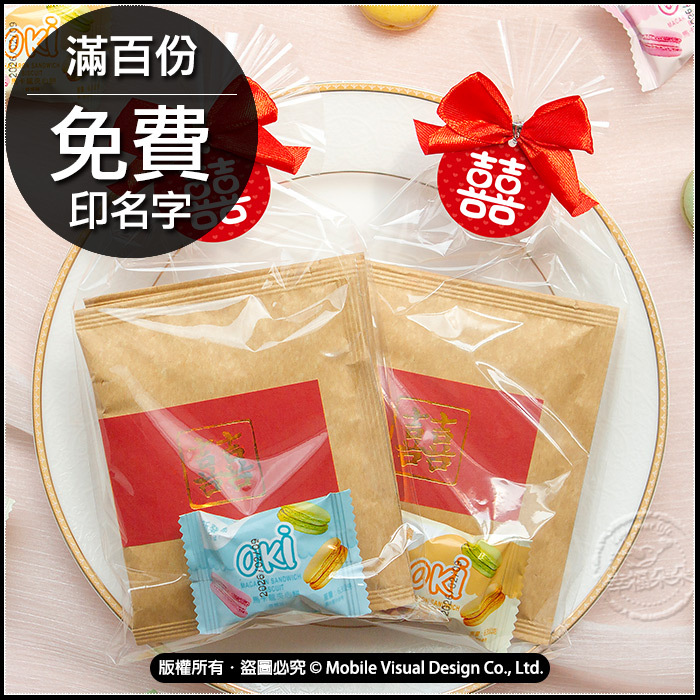 婚禮小物 囍字風格 禮物包 馬卡龍夾心餅1入+濾掛咖啡2包 -滿百份免費印名字 (客製限宅配) (新品上市特價中)