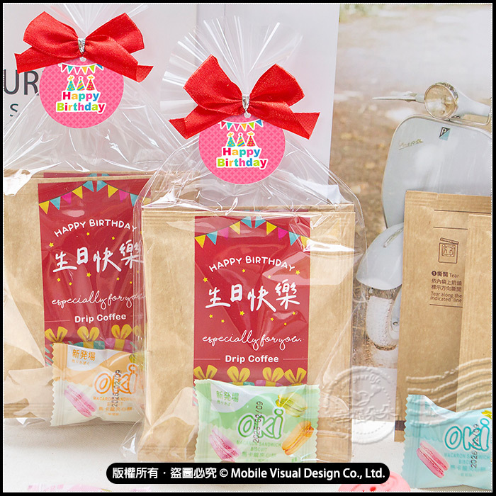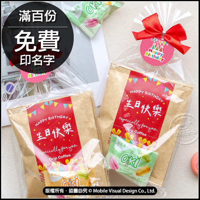生日快樂 禮物包 馬卡龍夾心餅1入+濾掛咖啡2包 -滿百份免費印名字 (客製限宅配) (新品上市特價中)