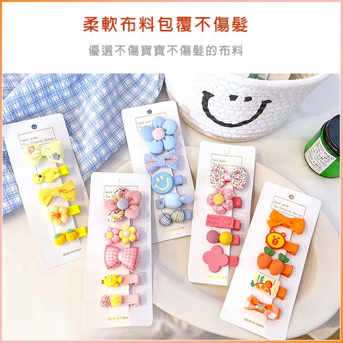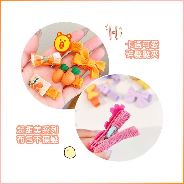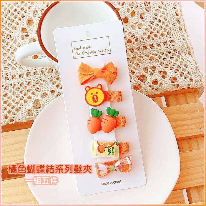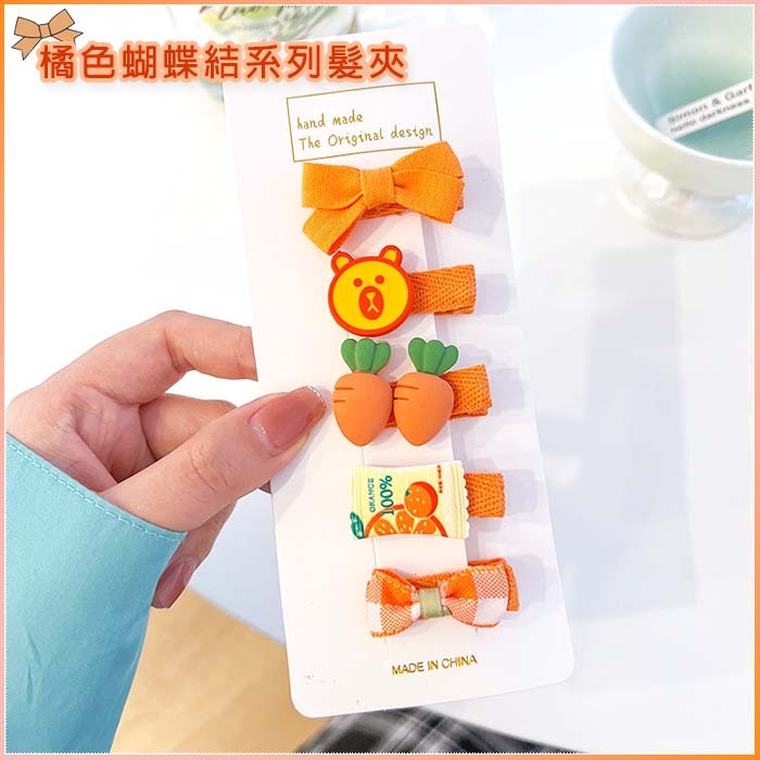 小朋友髮夾 (一套5個) 橘色蝴蝶結系列 款式隨機 寶寶布製髮飾 女生可愛髮夾
