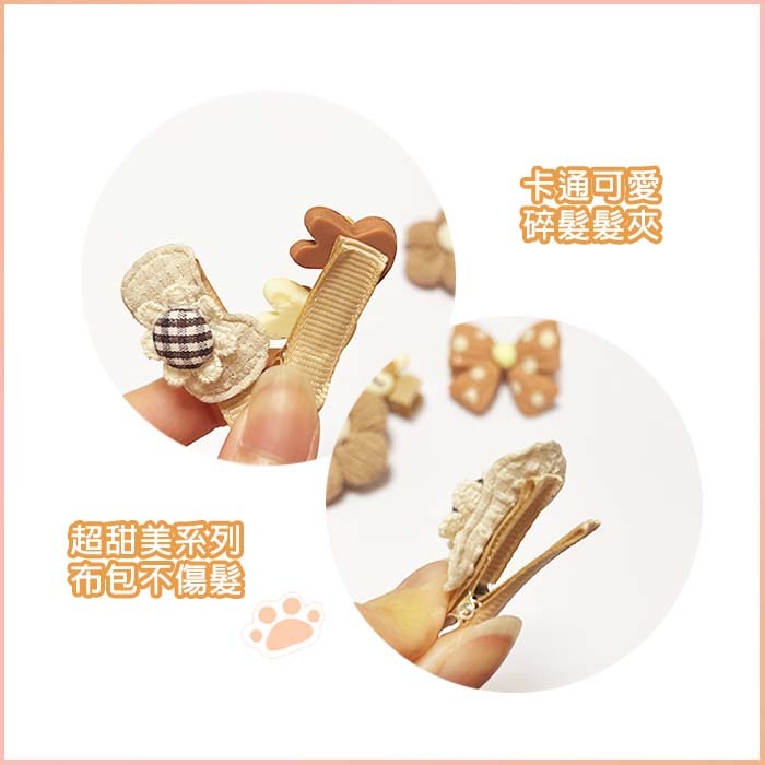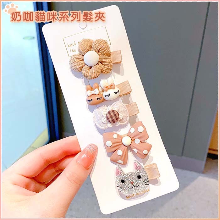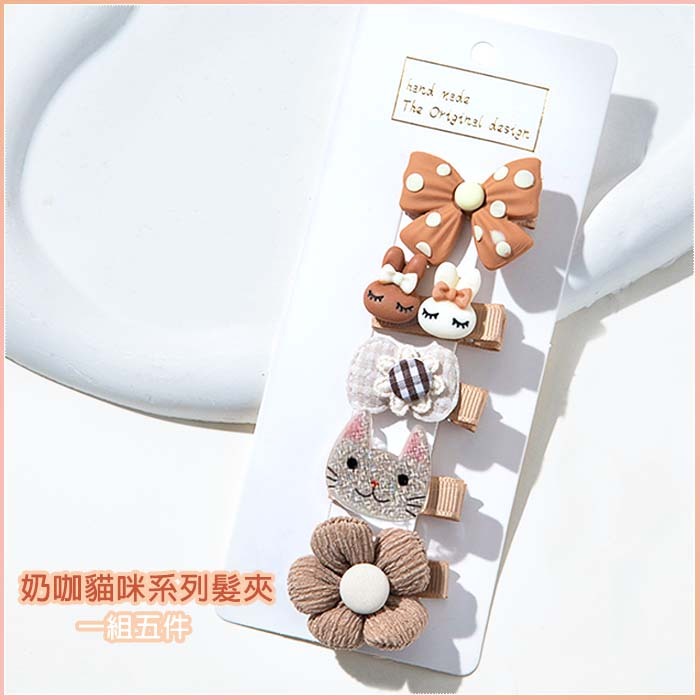 小朋友髮夾 (一套5個) 奶咖貓咪系列 款式隨機 寶寶布製髮飾 女生可愛髮夾