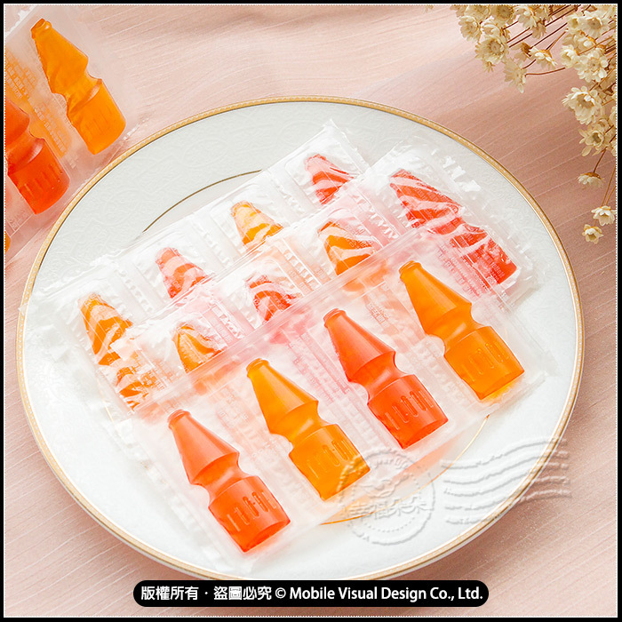 每單片含包裝約11.8cm x 7cm;軟糖實體約1.9 x 5cm (內容物手工測量,多少會有些微誤差喔! 不介意才下訂)