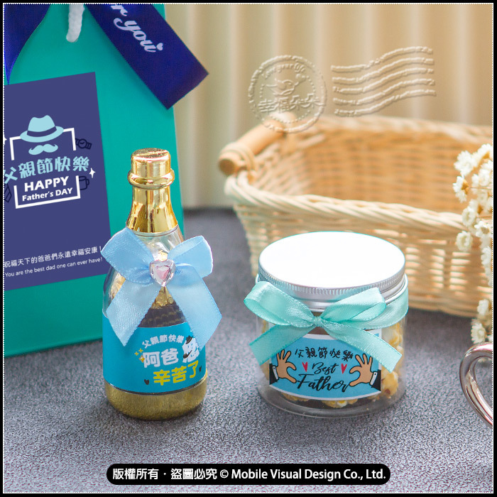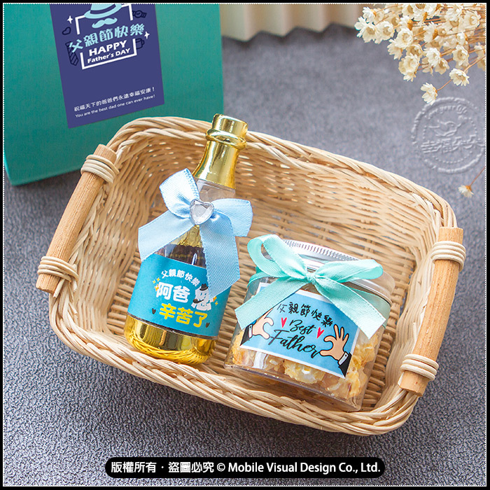 🎁 極致質感,香氛獻禮 🎁 用心挑選,成就非凡禮遇! ✨【禮包內容】: • 父親節焦糖爆米花罐 1罐 • 父親節香檳糖果瓶 1瓶 • 藍綠色Best Wishes小手提袋 1入 這不只是禮物,在每一個細節都為你設想, 從味蕾到視覺,滿分感動。 禮袋簡約有型,送禮、打卡兩相宜! 🔥 超值優惠:原價$150,現在只要$100! 作為送爸爸們或拜訪客戶都絕對是超棒的禮物💓 快來一起寵爸爸~ ( 為保護運送,附上袋子和緞帶需diy組裝喔 ) 📦 適用場景:活動贈品、節日回饋、企業福袋、客戶關懷等 ♥︎若大量訂購下訂前務必先詢問庫存數是否足夠喔!