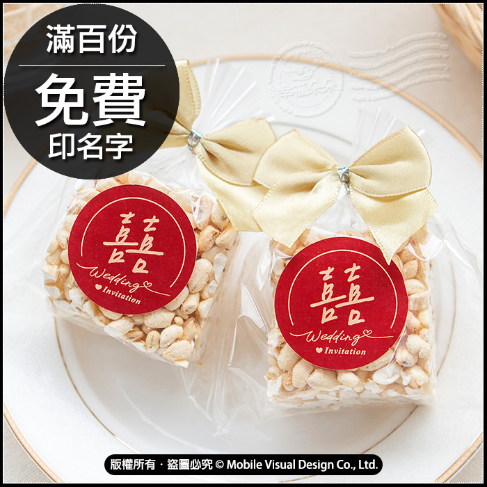 婚禮小物 手寫風紅色囍字米香 (滿百份免費印名字) (新品上市特價中)