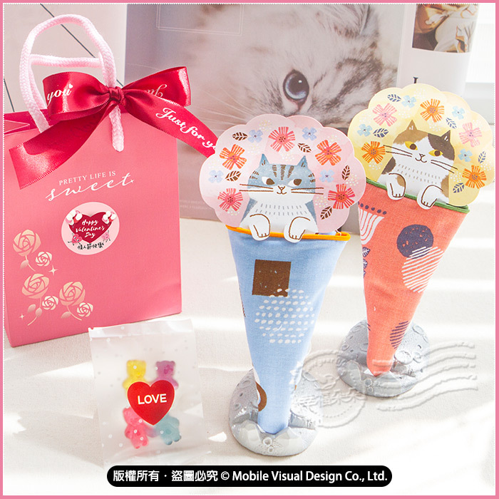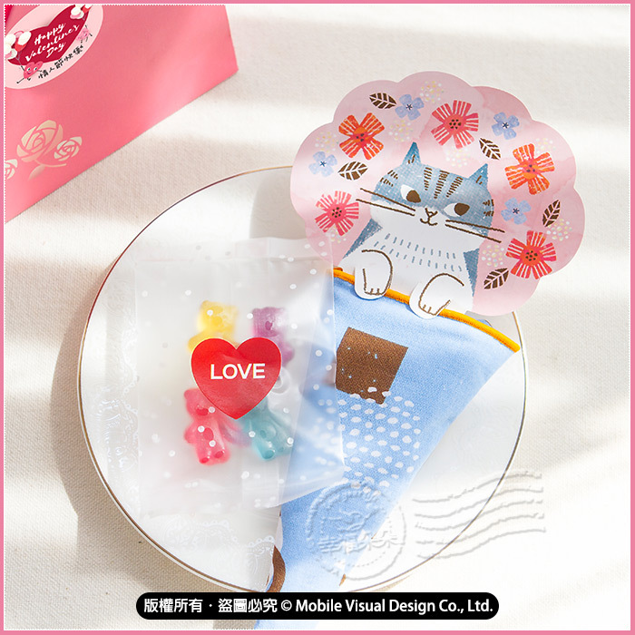 情人節禮物推薦 送禮組合禮袋C款 (日本貓咪花束手巾+LOVE牽手小熊軟糖1包2入) (新品上市特價中)
