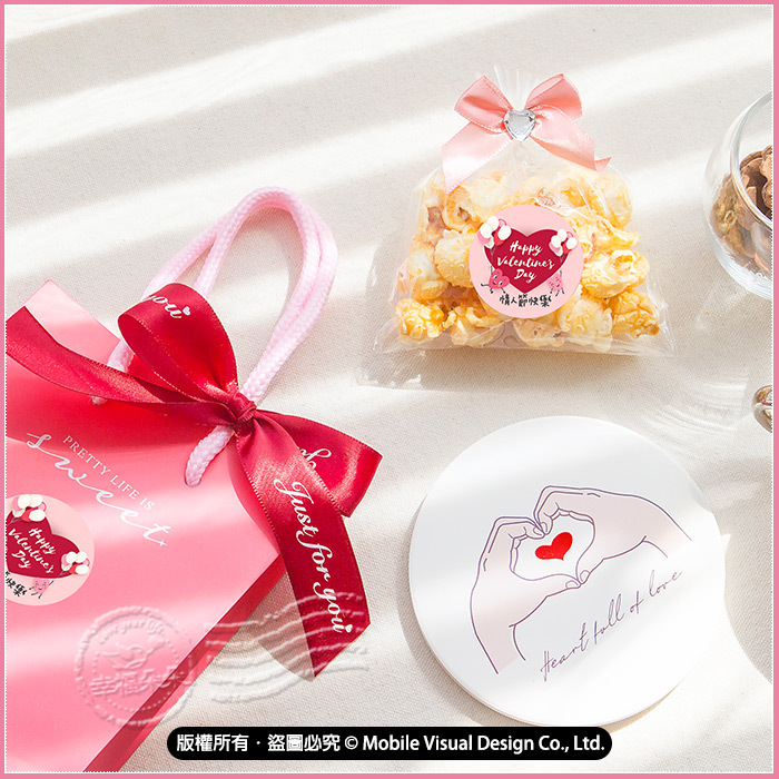 情人節禮物推薦 送禮組合禮袋F款 (情人節迷你包爆米花+文青大愛心吸水杯墊) (新品上市特價中)