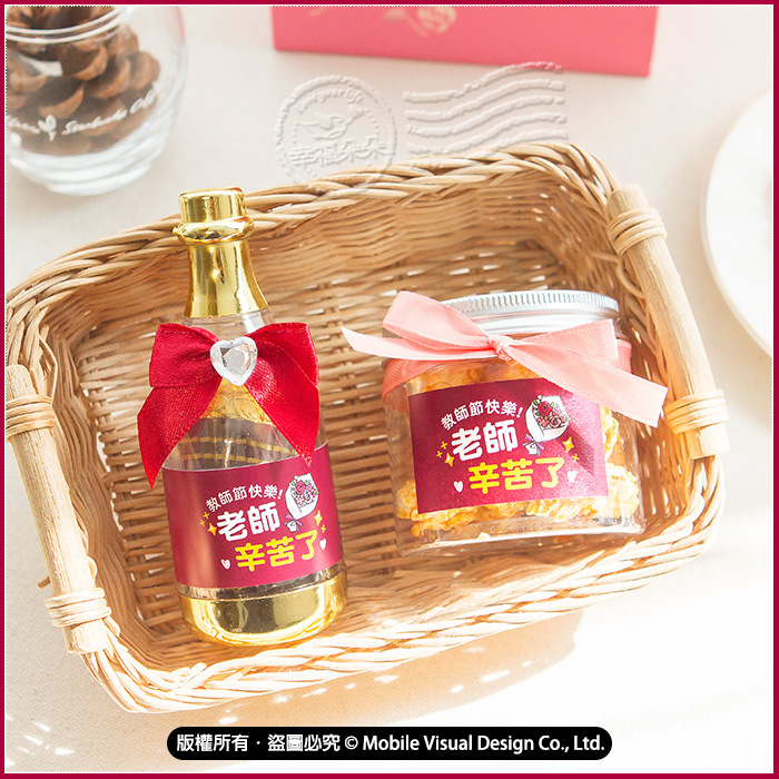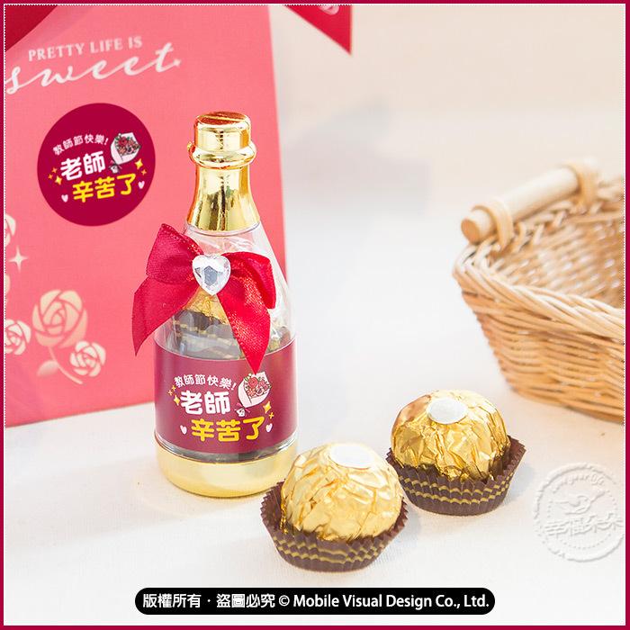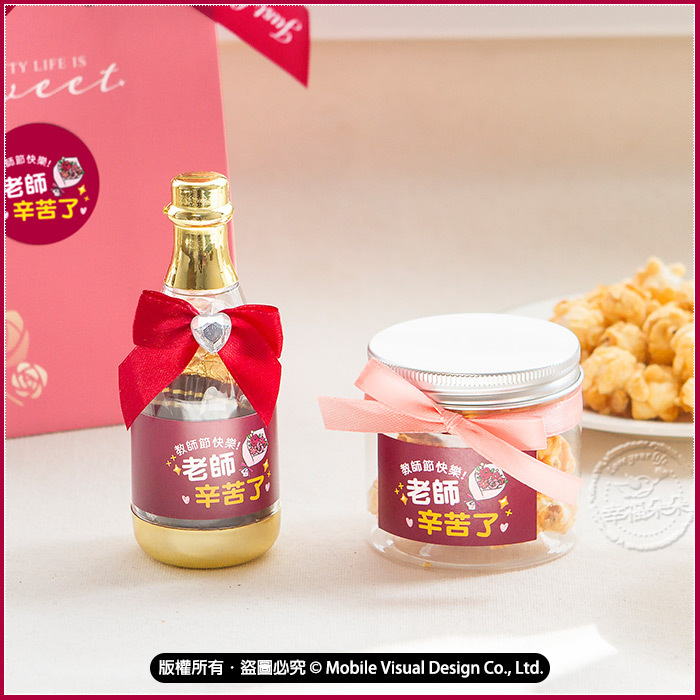 教師節禮物推薦 送禮組合禮袋A款 (爆米花罐+香檳糖果瓶-金莎2顆入) -附袋子緞帶需diy組裝 (新品上市特價中)