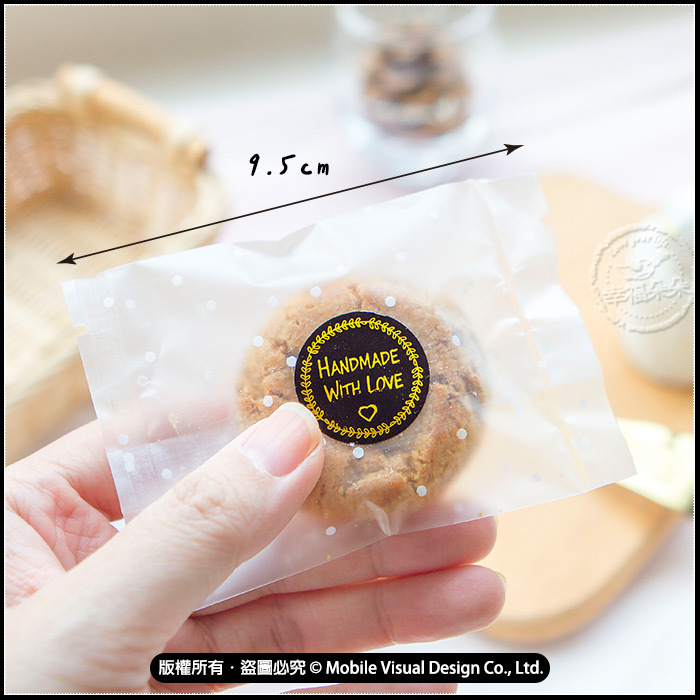 每片餅乾約5 cm圓 含包裝約9.5x7cm (重約15g) (內容物手工測量,多少會有些微誤差喔! 不介意才下訂)