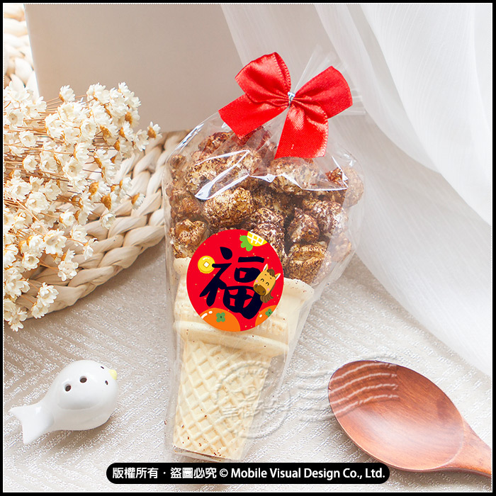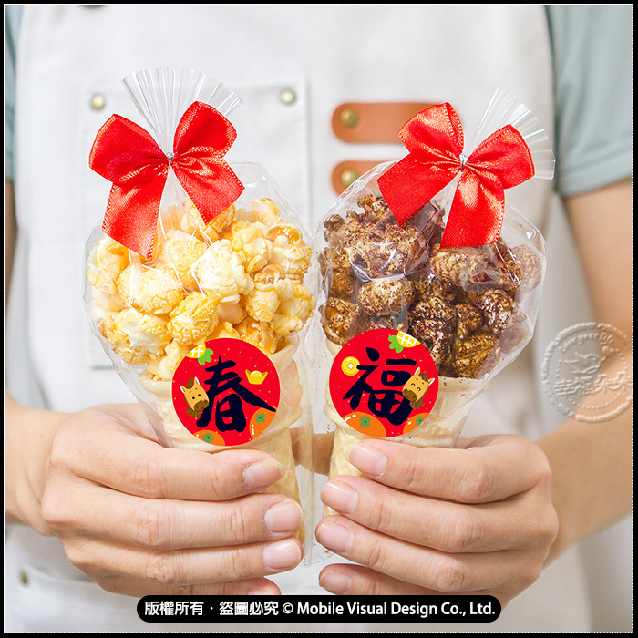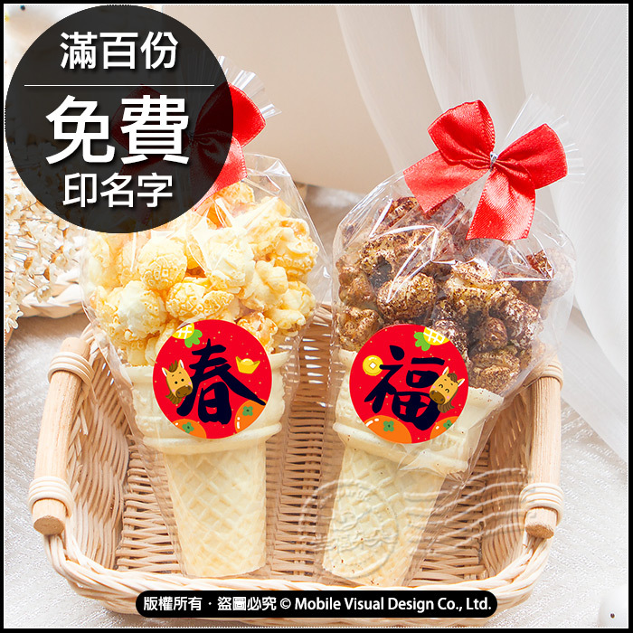 ✦ 馬年限定 -- 為迎接馬年的喜氣開運,新春限定推出【春來福到小甜筒爆米花】!可愛甜筒包裝搭配紅色蝴蝶結,外觀充滿節慶氛圍,不只療癒又討喜,更是年節送禮的超人氣選擇。貼心提供兩種口味,無論甜蜜香醇或濃郁焦香,都能滿足不同喜好。 ✦ 滿百份免費印文字 專屬心意客製 -- 凡訂購滿100份即可免費加印文字或企業名稱,專屬訂製更具紀念價值。非常適合企業尾牙禮、學校活動小禮、婚宴回禮或節慶拜訪伴手禮。 ✦ 多款設計 彈性選擇 -- 提供「春字款」、「福字款」兩種可挑,皆採獨立包裝,衛生好保存。搭配節慶佈置或禮盒組合,展現滿滿春節氛圍。 ✦ 適用情境 -- 春節拜年伴手禮 年終尾牙小禮物 公司贈品、開工禮 派對分裝零食 新年交換禮物 親友祝福小物