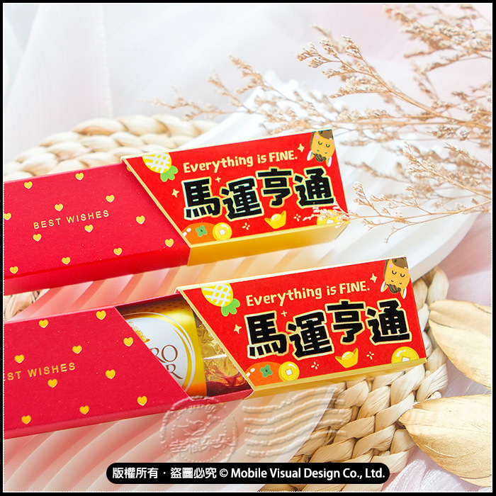 馬年祝福語時尚閃金包裝 金莎3顆入 (滿百份免費印名字)(新品上市特價中)