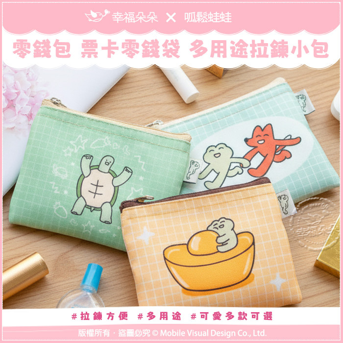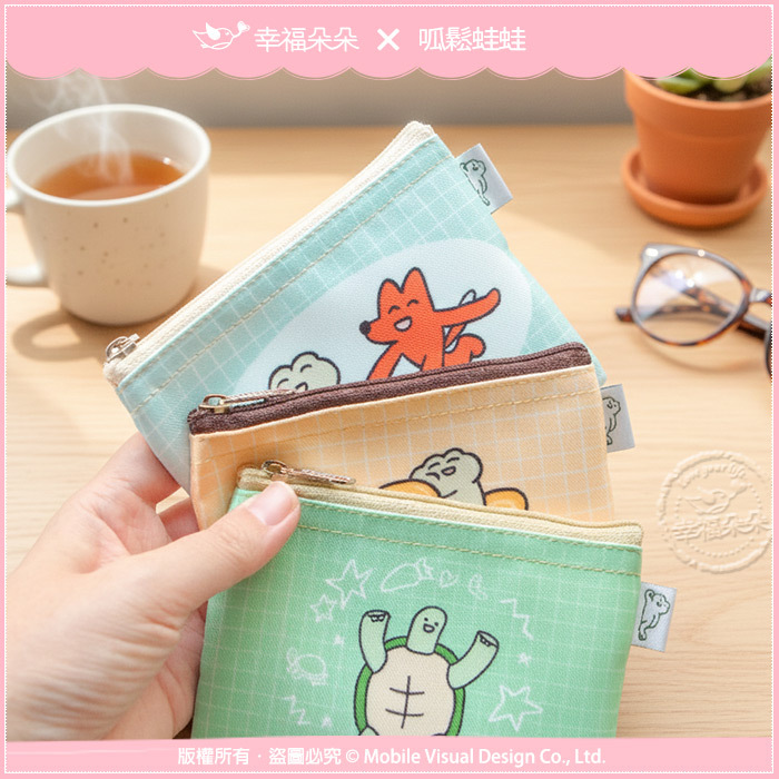 【幸福朵朵 x 呱鬆蛙蛙】 獨家授權 零錢包 票卡零錢袋 多用途拉鍊小包 (新品上市特價中)