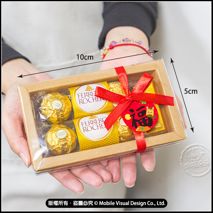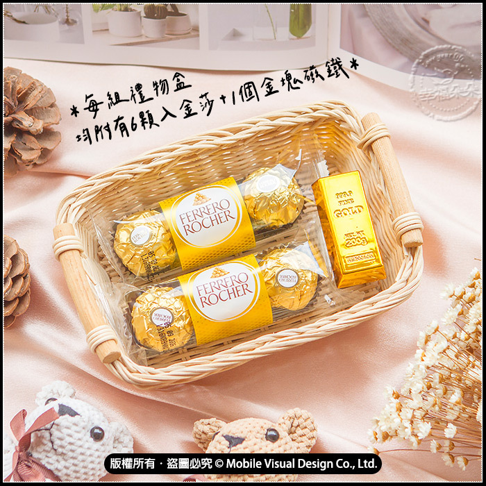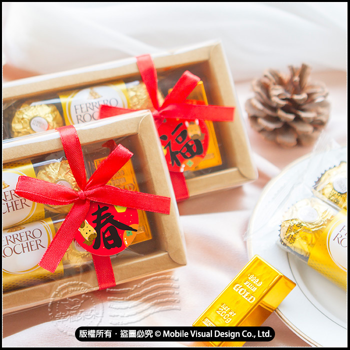 ✦ 馬年限定|春來福到・賺大錢開運禮盒 🎉 新年送禮不只要好看,更要有好兆頭! 這款【開春小禮品】結合人氣金莎巧克力與象徵財運的金塊磁鐵,寓意「甜甜過年、財運滾滾來」,送禮自用都超有面子! ✔ 金莎巧克力 × 6顆(經典熱銷款) ✔ 999金塊造型磁鐵 × 1(象徵財富滿滿) ✦ 適合送禮場合 -- 春節拜年伴手禮 年終尾牙小禮物 公司贈品、開工禮 派對分裝零食 新年交換禮物 親友祝福小物 *單筆訂購滿100份以上可挑1款於吊牌上免費加印客製文字! *單筆訂購滿200份以上可挑2款於吊牌上免費加印客製文字! *接單後,公版現貨約3天內交件,若是客製吊牌則約7-10天內交貨! ※訂購滿百份者若欲客製加印文字請詳閱以下注意事項↓↓↓ 1. 請務必記得要留言備註您的文字內容喔! 未備註者將以混2款「公版」出貨 !!! 2. 若您文字愈多字級會相對愈小喔!! (圖7客製文字約莫9級給您參考!!) 保存方式:存放於乾燥陰涼處即可 保存期限:至少半年以上