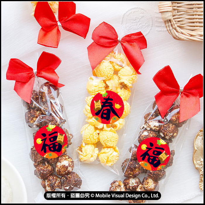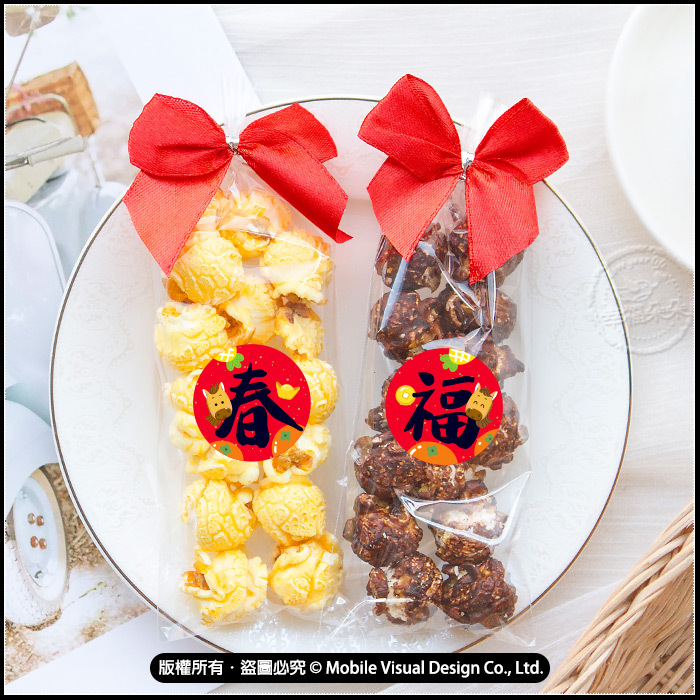 🎊馬年開春・福氣滿滿的甜蜜小禮 -- 紅色喜氣包裝搭配「春」「福」馬年元素設計,象徵新年好運、財運滿滿,無論送親友、同事或作為活動小禮都非常合適。 🍿雙口味任選・酥脆不甜膩 -- ✔焦糖口味|香甜濃郁、經典不敗 ✔巧克力口味|可可香氣濃厚、口感滑順 🎁輕巧包裝・送禮無負擔 -- 精緻透明OPP袋包裝,搭配紅色蝴蝶結,質感升級,不需再另外包裝。 ✨適合場合 -- ・新年拜訪親友 ・公司開工發放 ・活動來店禮 ・年節應景小禮 🧡需提前3周以上預訂,請先留言使用日期及數量,確認後再下訂,謝謝您!! 採接單後新鮮現做於使用日期前2-3天交貨(趕件者請先詢問時間)