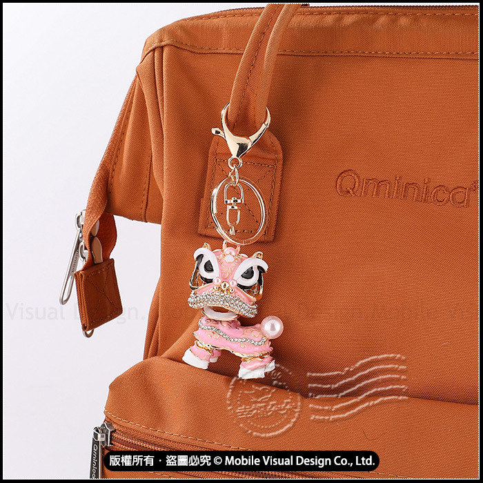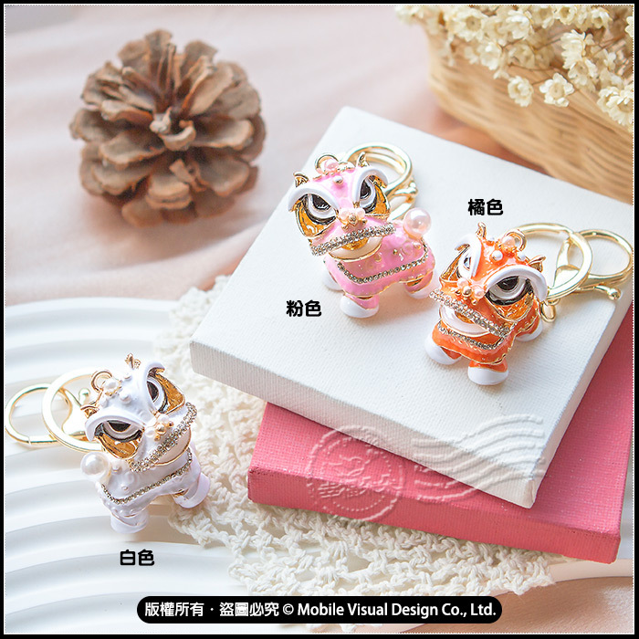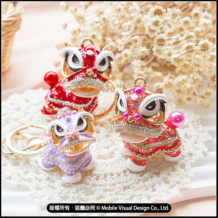 國潮鑲鑽醒獅鑰匙圈 吉祥舞獅吊飾 頭部可360度旋轉 (新品上市特價中)
