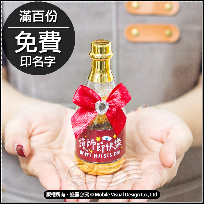 護師節快樂 香檳糖果瓶(金莎2顆入) -滿百份免費印名字 (新品上市特價中)