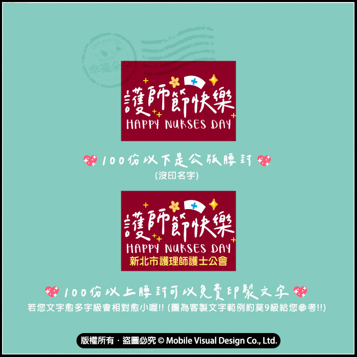 🧡100份以下是公版腰封(無客製文字) 🧡100份以上可於腰封免費印製文字 ※訂購滿百份者若欲客製加印文字請詳閱以下注意事項↓↓↓ 1. 請務必記得要留言備註您的文字內容喔! 未備註者將以「公版」出貨 !!! 2. 若您文字愈多字級會相對愈小喔!! (圖5客製文字約莫9級給您參考!!)