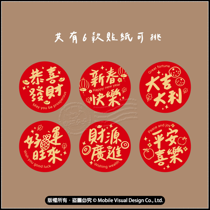 🎊 新年喜氣滿滿!拜年送禮必備桃酥 過年就是要有年味!經典傳統桃酥搭配喜氣紅色圓形4字祝福貼紙,視覺吸睛又討喜,無論自用、拜年、公司送禮、宮廟拜拜、開工分享都非常合適。 ✨ 六款新年喜氣祝福貼紙可選 ✔ 恭喜發財 ✔ 新春快樂 ✔ 大吉大利 ✔ 好運旺來 ✔ 財源廣進 ✔ 平安喜樂 無論是拜年送禮、公司發放、活動小禮物、年節糖果分享都超合適。 ✔ 傳統風味,口感酥鬆綿密 ✔ 香氣濃郁,不甜不膩 ✔ 奶素配方,素食者也可安心享用 ✔ 大人小孩都喜歡的經典年節點心 每一口都是熟悉的過年味道~ 🎁 適用場合 ▪ 過年年貨零食 ▪ 春節拜年伴手禮 ▪ 公司尾牙發放 ▪ 春酒活動小禮 ▪ 客戶送禮 ▪ 團購零嘴分享 過年就是要紅紅火火、甜甜蜜蜜! 現在就加入購物車,為新年準備一份好吃又討喜的喜氣零食吧 🎊