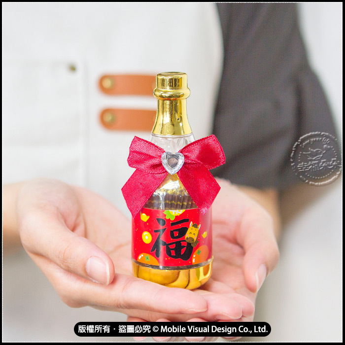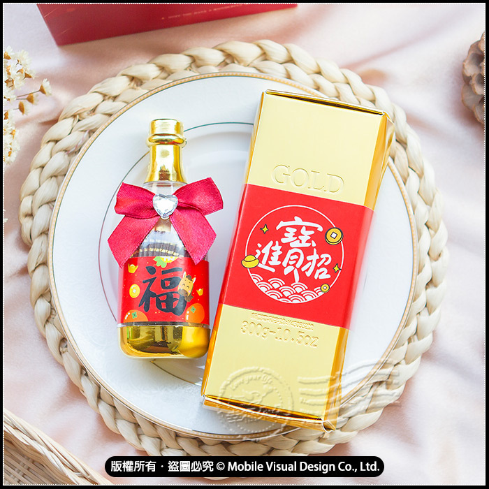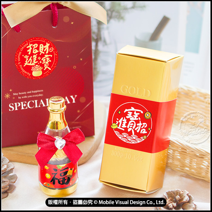 過年禮物推薦 招財進寶禮袋A款 (福到香檳瓶金莎2入+招財進寶金磚米) -附袋子緞帶需diy組裝 (新品上市特價中)