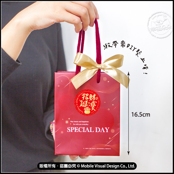 2026 新年送禮首選!這款「招財進寶禮袋A款」集結了滿滿福氣。內含象徵甜蜜財運的福到香檳瓶金莎,以及代表豐收的招財進寶金磚米。喜氣紅金配色,不僅是親友拜年的創意小禮,更是公司尾牙桌上禮、開工賀禮的高 CP 值首選!附贈精緻袋子與緞帶(DIY 組裝,誠意滿滿)。 多用途場景: 【創意滿點】 獨特的香檳瓶造型裝載金莎巧克力,象徵「福氣到、財運發」。 【實用好禮】 精選招財金磚米,祝福收禮人整年「食祿豐沛、金玉滿堂」。 【精緻包裝】 採用大氣的紅金配色禮袋,搭配手工緞帶(需自行組裝),送禮體面又具手作溫暖。 【多用途推薦】 適用於新年拜年、春節尾牙、公司商務贈禮、門市開幕開工小禮。 禮包內容: 1.g4023馬年福字香檳瓶金莎2入X1瓶 2.g4012招財進寶300g金磚米 3.g4041紅色小禮物袋X1個(已貼5cm招財進寶貼紙,需DIY裝入) 4.44cm金色緞帶X1條(需DIY綁上) 請常溫保存乾燥陰涼處,避免高溫、潮濕及陽光曝曬處。 期限:至少180天以上 ♥︎若大量訂購下訂前務必先詢問庫存數是否足夠喔!